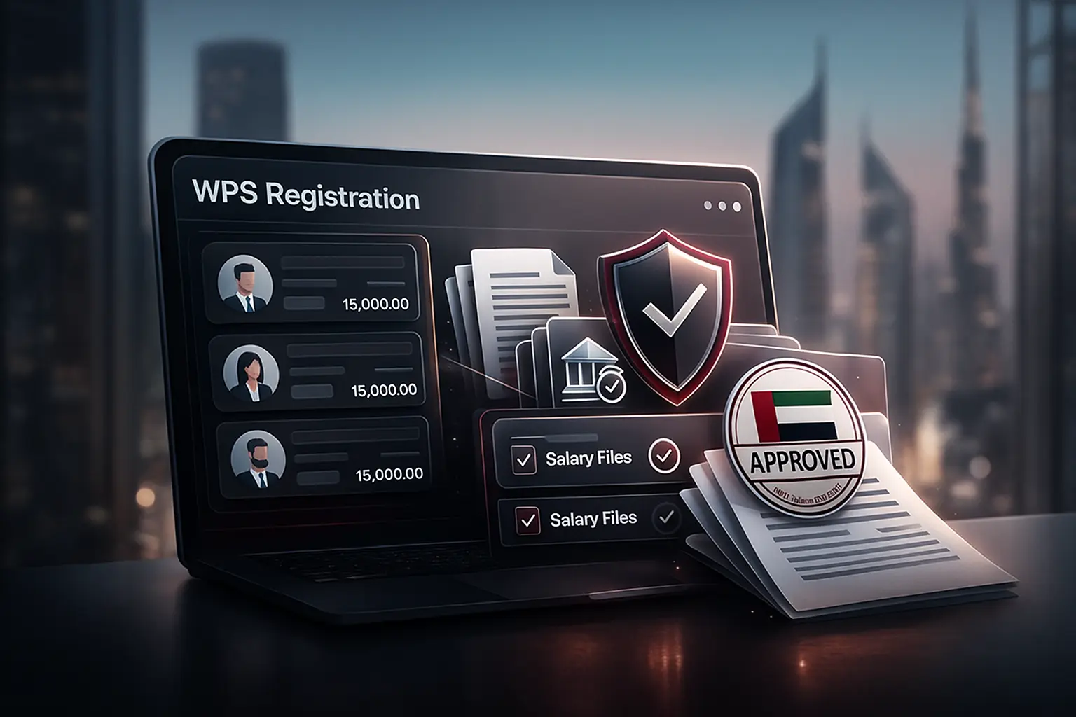 Accurate and timely monthly payroll management, including salary calculation, WPS file generation, allowances, deductions, and secure disbursement — all while maintaining full regulatory compliance.